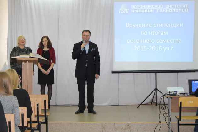 По итогам весеннего семестра 2015-2016 уч. г. были вручены стипендии 55 лучшим студентам ВИВТ! Почетные грамоты за отличные успехи в учебе студентам вручил ректор И. Я. Львович.