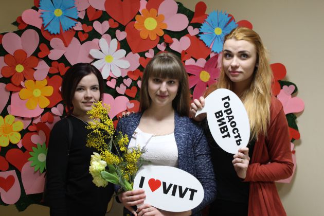 7 марта всех присутствующих поздравили вокальная студия «Single», танцевальный коллектив «Эндорфин», студия театрально-эстрадных миниатюр и иностранные студенты ВИВТ. Со сцены не раз звучали слова любви и благодарности, поздравления и пожелания, адресованные нашим замечательным преподавателям.