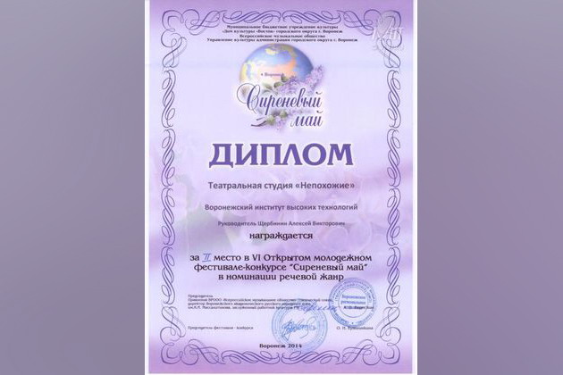 От Воронежского института высоких технологий участие принимали 2 творческих коллектива студентов. Театральная студия "Непохожие" заняла 2 место в номинации "речевой жанр". Вокальная студия "Los Contantes" заняла 1 место в номинации "эстрадный вокал".