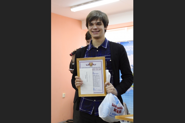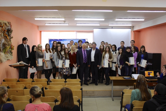 3 декабря в Воронежском институте высоких технологий состоялась церемония вручения стипендий студентам, которые принимали активное участие в жизни вуза, отлично учились, достигли успехов в науке. По итогам весеннего семестра 2013-2014 уч.г. были вручены ректорские стипендии 63 лучшим студентам факультета дневного обучения. По сложившейся в нашем институте традиции лучшим из лучших студентам была вручена именная стипендия заместителя председателя Воронежской городской Думы, главы благотворительного фонда «Доброта» Александра Алексеевича Жукова. Почетные грамоты за отличные успехи в учебе студентам вручил ректор И. Я. Львович. Также руководитель ЦГВ-Воронеж Г.А. Перепелицина вручила студентам сертификаты о прохождении обучения «Инновационная проектная деятельность по оказанию социальных услуг населению» в рамках дистанционной школы Комитета гражданских инициатив.