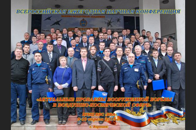 9-10 апреля 2015 года в Военном учебно-научном центре Военно-Воздушных сил "Военно-воздушная академия имени профессора Н.Е. Жуковского и Ю.А. Гагарина" проходила Всероссийская ежегодная научная конференция "Актуальные проблемы вооруженной борьбы в воздушно-космической сфере".