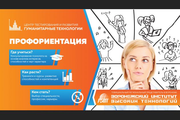 Воронежский институт высоких технологий стал официальным региональным представительством Центра тестирования и развития Московского государственного университета имени М.В. Ломоносова "Гуманитарные технологии" по проведению тестирования с использованием инновационных методик и технологий профориентации.