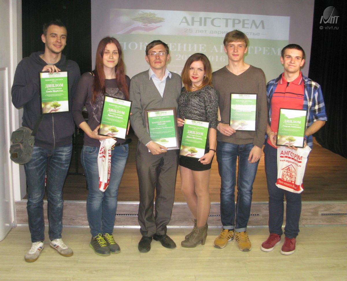 17 мая в книжном клубе «Петровский» состоялось награждение участников конкурса «Поколение Ангстрем-2016». ВИВТ представляли студенты Гордей Шмалько, Щетникова Дарья, Гусарова Ирина, Тамбовцев Георгий, Щербатых Семён. По итогам конкурса они были награждены дипломами и ценными призами.