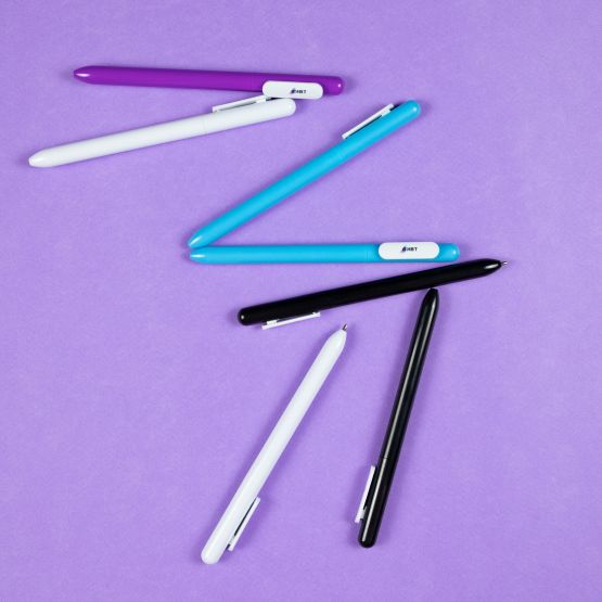 Ручка из пластика с глянцевым покрытием и белым глянцевым клипом.